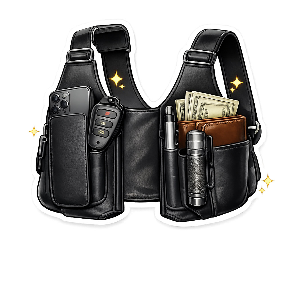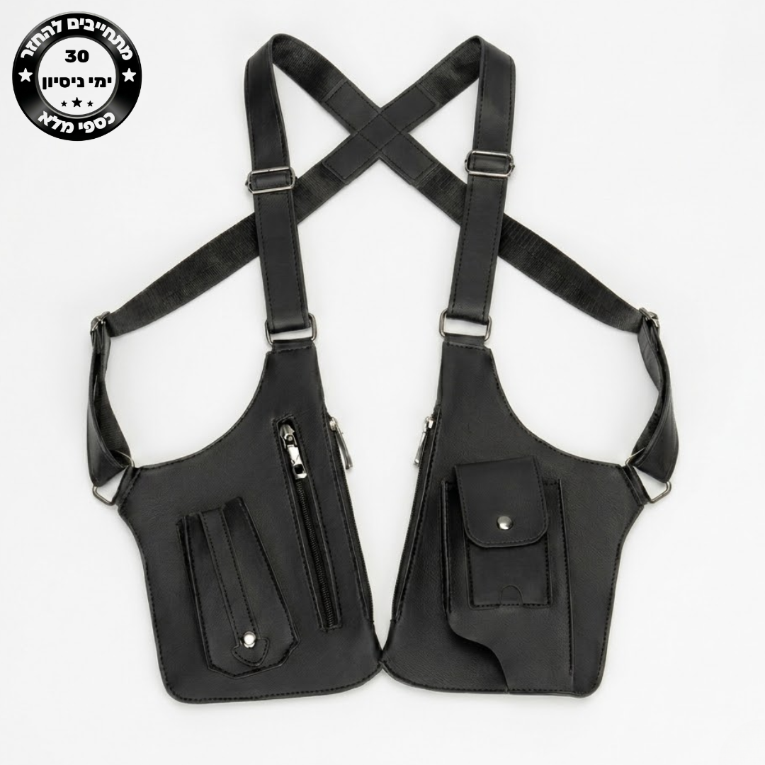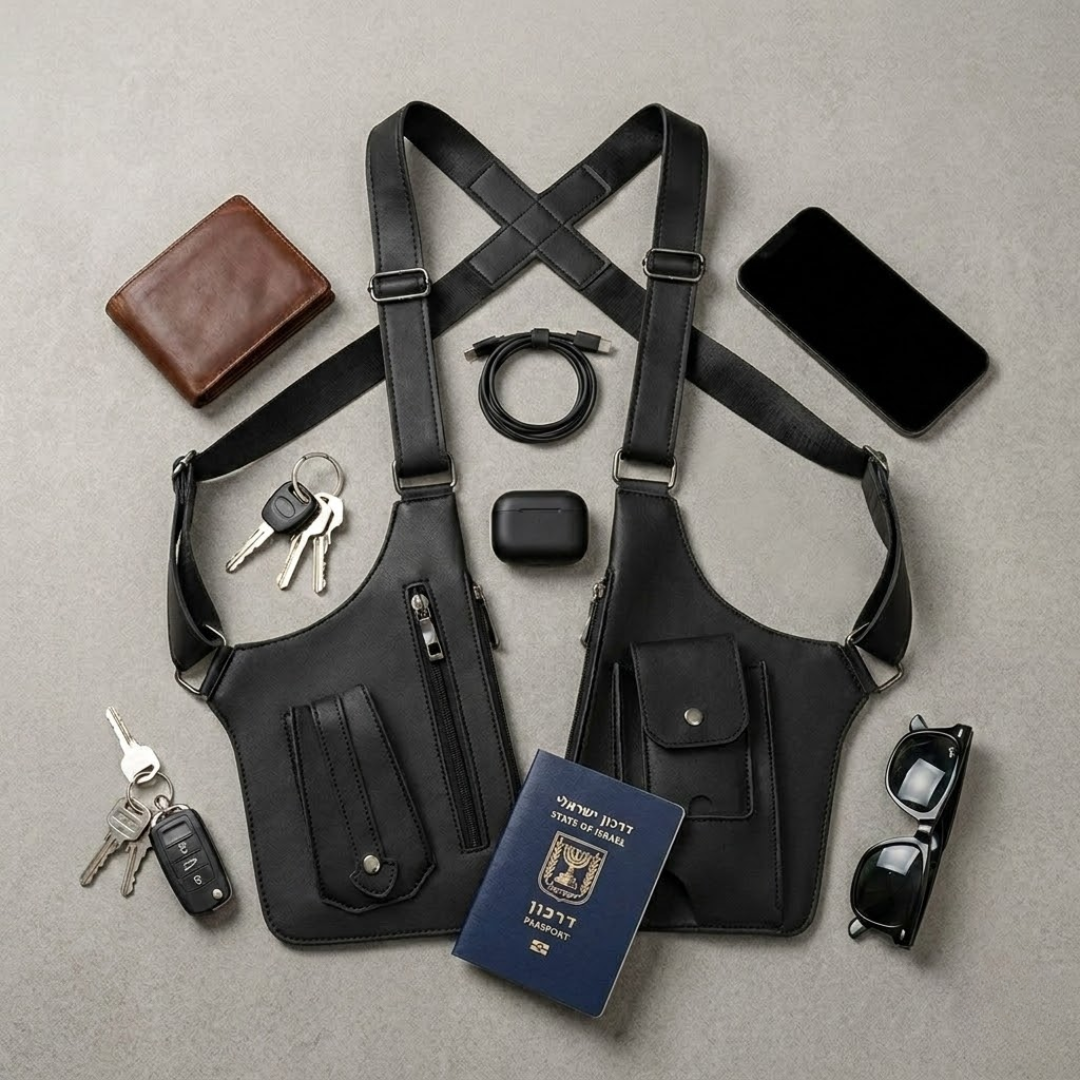 זה פתרון נשיאה חכם ובטיחותי. הוא מוריד את כל העומס מהכיסים ונצמד באופן קלאסי לגוף, ככה שאתה מסתובב עם כל מה שצריך - בלי נפיחות, בלי בליטות ובלי להיראות כמו תייר עם תיק עליך.