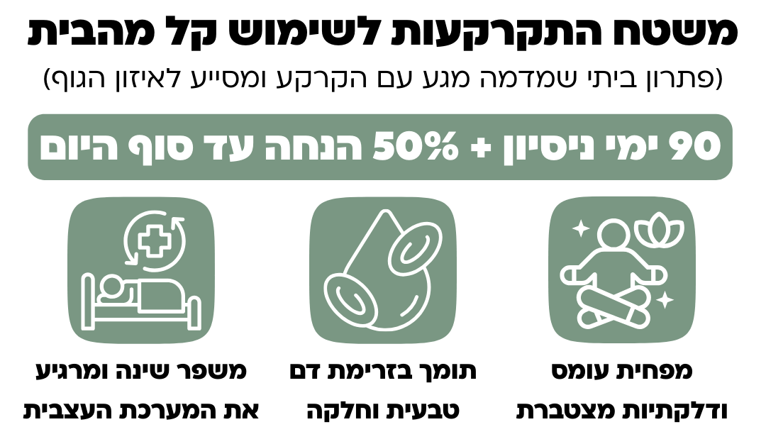 ההתקרקעות יוצרת חיבור מרגיע שעוזר לגוף לעבור ממצב של דריכות למצב של רוגע ואיזון, ולתמוך בתחושה כללית טובה יותר.